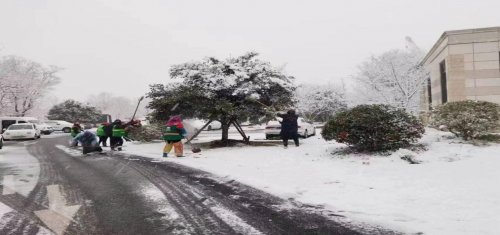 组织雨雪冰冻天气应急演练;树木加固队对树木进行应急加固,及时清除积雪,防止压断枝条,最大程度保护绿化成果;路面除雪队负责各主干道路积雪清扫、除冰融雪等工作,保证项目管养区域道路交通畅通。