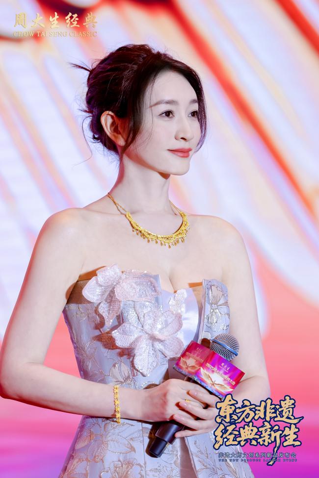 杨文琴大师的深度解读,让这份对传统文化的敬意和探索的热情持续升温,周大生经典品牌大使李小冉也就此次发布的新品,分享了自己的感受,并细致阐述了所佩戴的衣脉金承系列的灵感巧思。她高度认同周大生经典将非遗元素巧妙融入当代珠宝设计的匠心理念,并赞扬品牌在文化传承与创新上的卓越追求,为这场文化盛宴更添璀璨光彩。