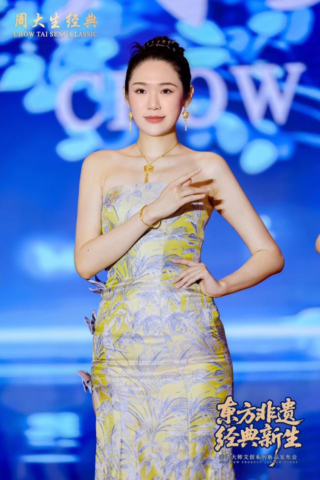 此次互动不仅彰显了非遗大师文创系列在美学意境,与文化内涵上的深厚积淀,更生动诠释了周大生经典在非遗活化传承之路上的笃实践行。随着现场模特的多方位展示,新品在光影流转间徐徐绽放,每一步皆如文化叙事的延展,在动静相宜中,传递出非遗文创珠宝的独特气韵。
